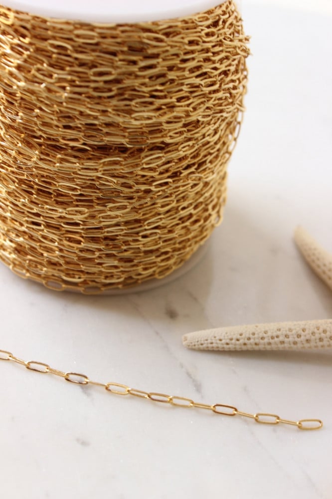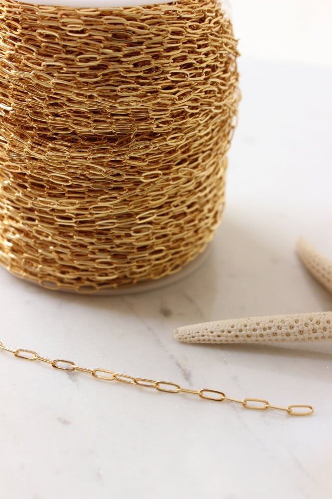 3x6mm 24k Shiny Gold Link Chain, Gold Bar Chain