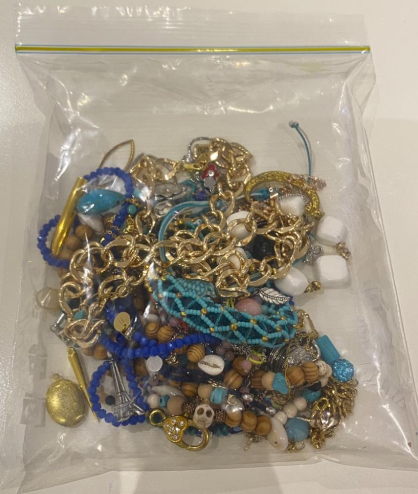 الكيس يتضمن الأقراط والخواتم والتعليقات والقلائد والأساور وما إلى ذلك