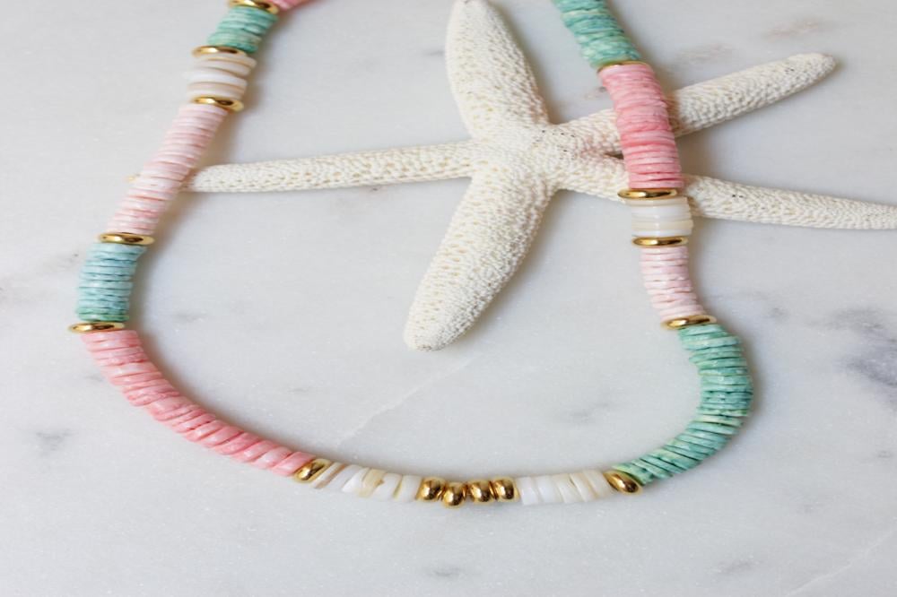 اسوره خرز ازرق مع تعليقة نحله بلون الروز...
