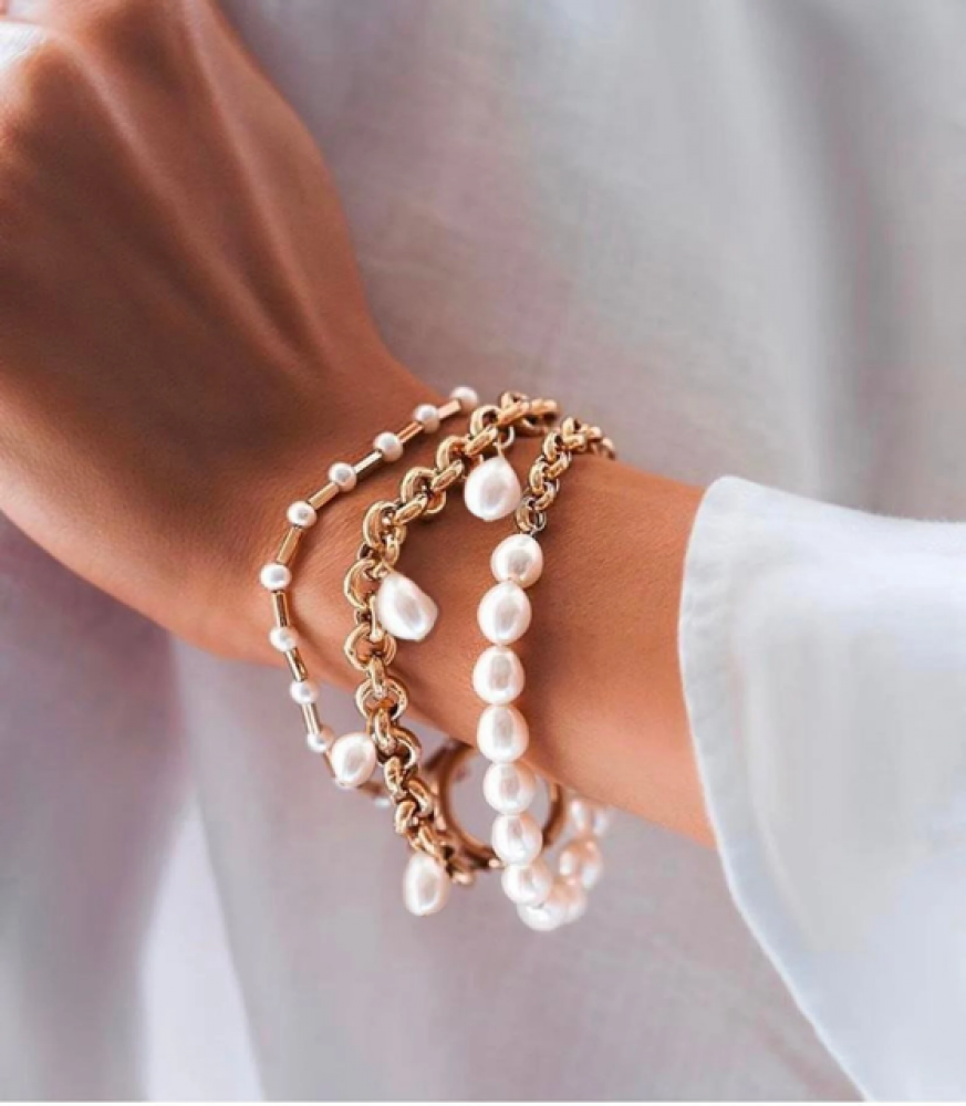 خلخال خرز ابيض مع قلب ذهبي اكسسوار مطلي