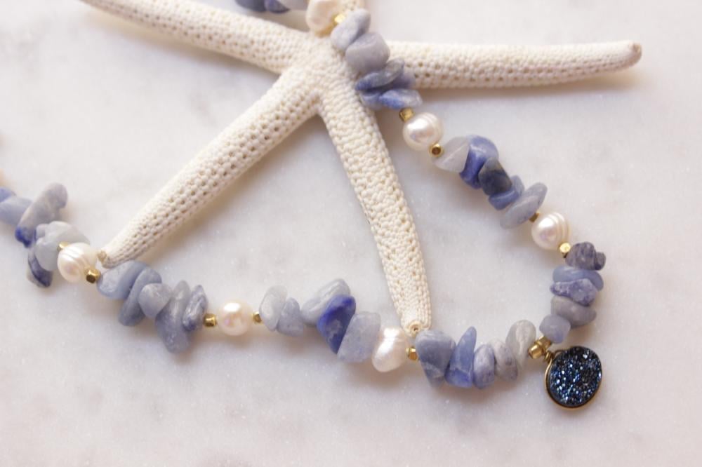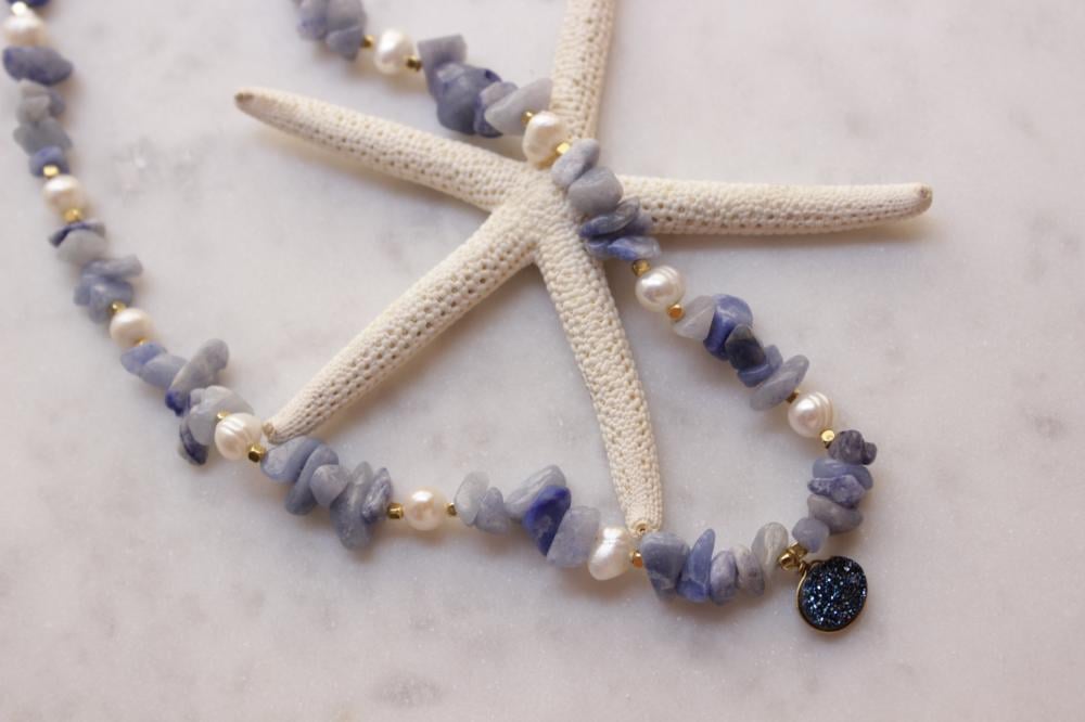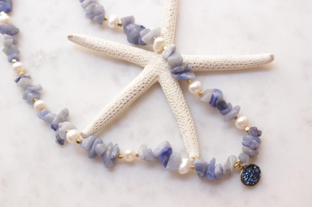 سلسله خرز ازرق مع تعليقة حجر ابيض