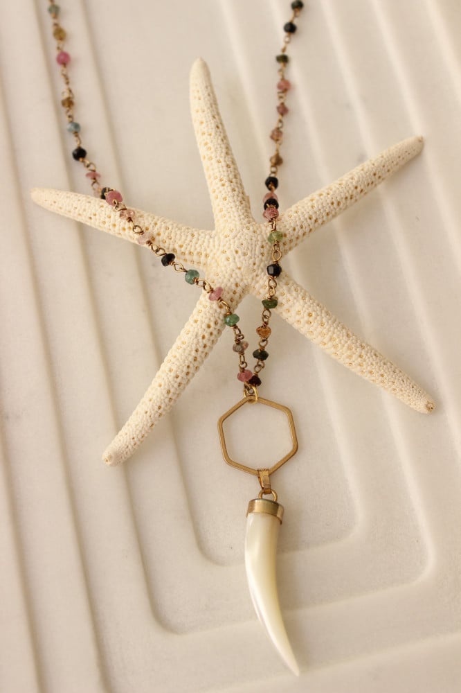 سلسلة حجر اماثيست مع تعليقة العاج الابيض