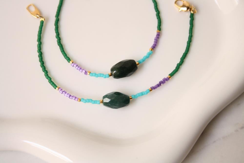 سلسله بحجر تركواز دمعه مع لولو وخرز احمر