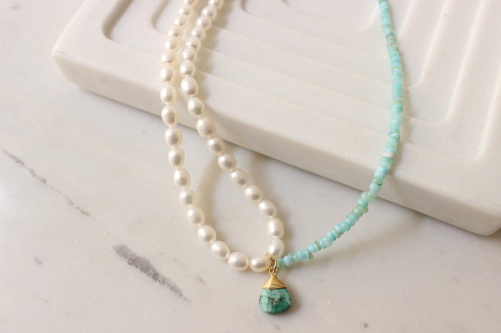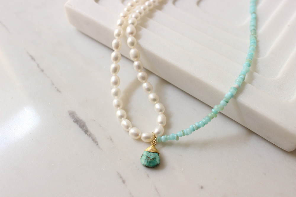 سلسلة نص لولو ونص خرز سماوي وحجر تركواز