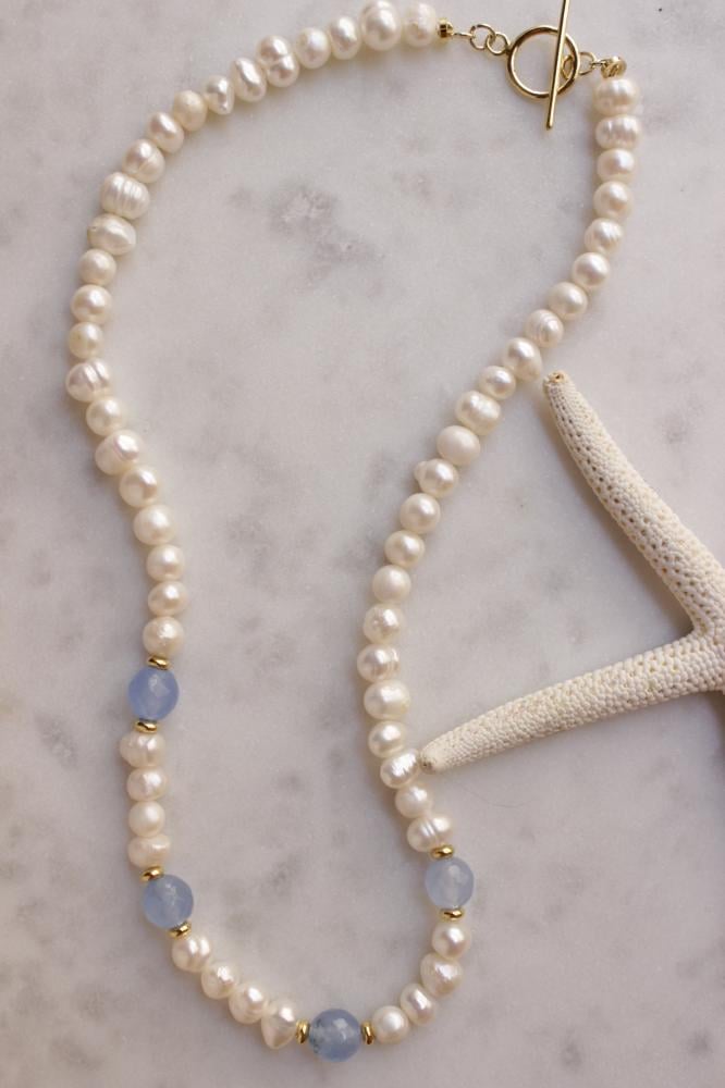 اسورة صدف ذهبي مع حجر اوبال سماوي