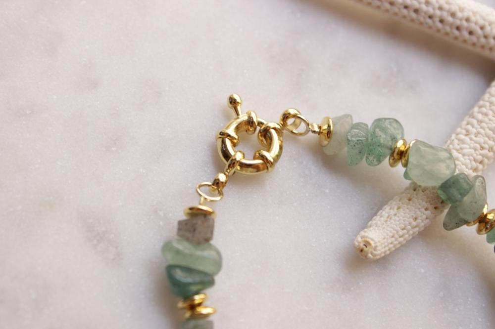 اسوره خرز ازرق مع تعليقة نحله بلون الروز...