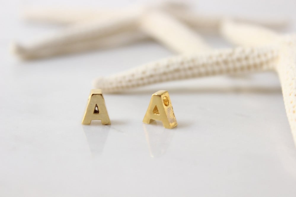 6x7mm " A " 24k Shiny Gold Letters, Letter Charms, Letter Beads