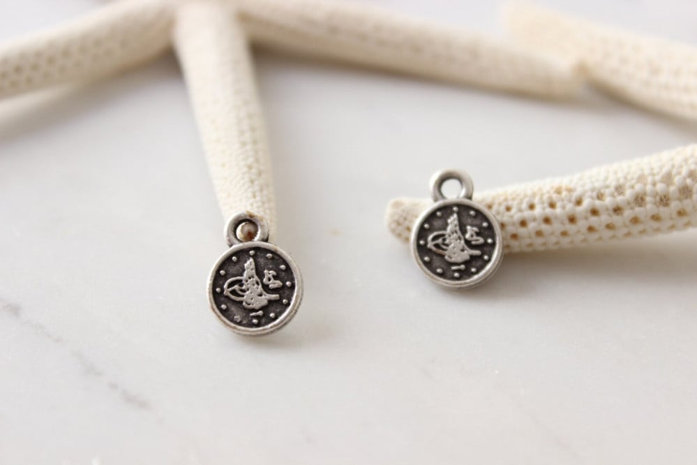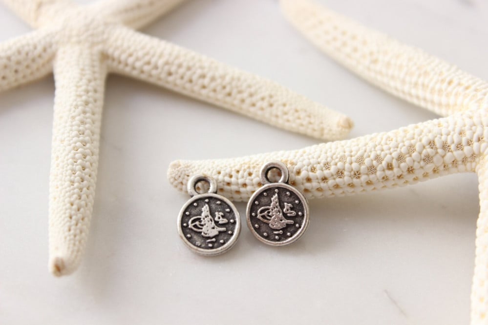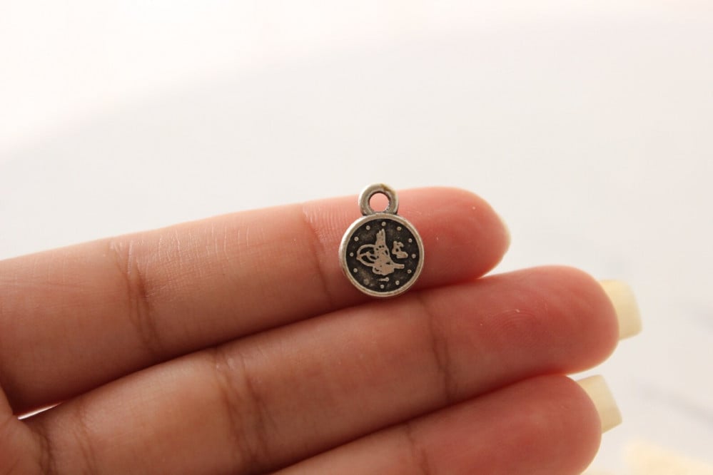 8mm Antique Silver Plated Ottoman Disc , Ottoman Signature Charms