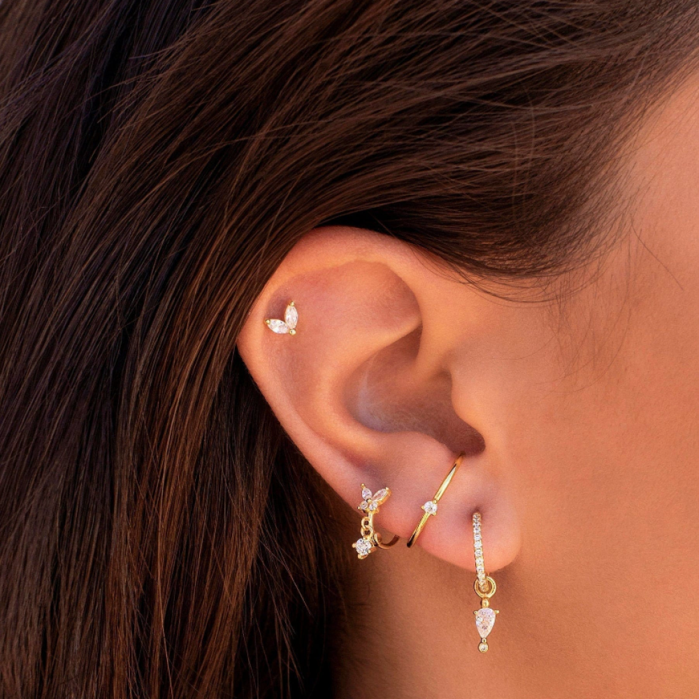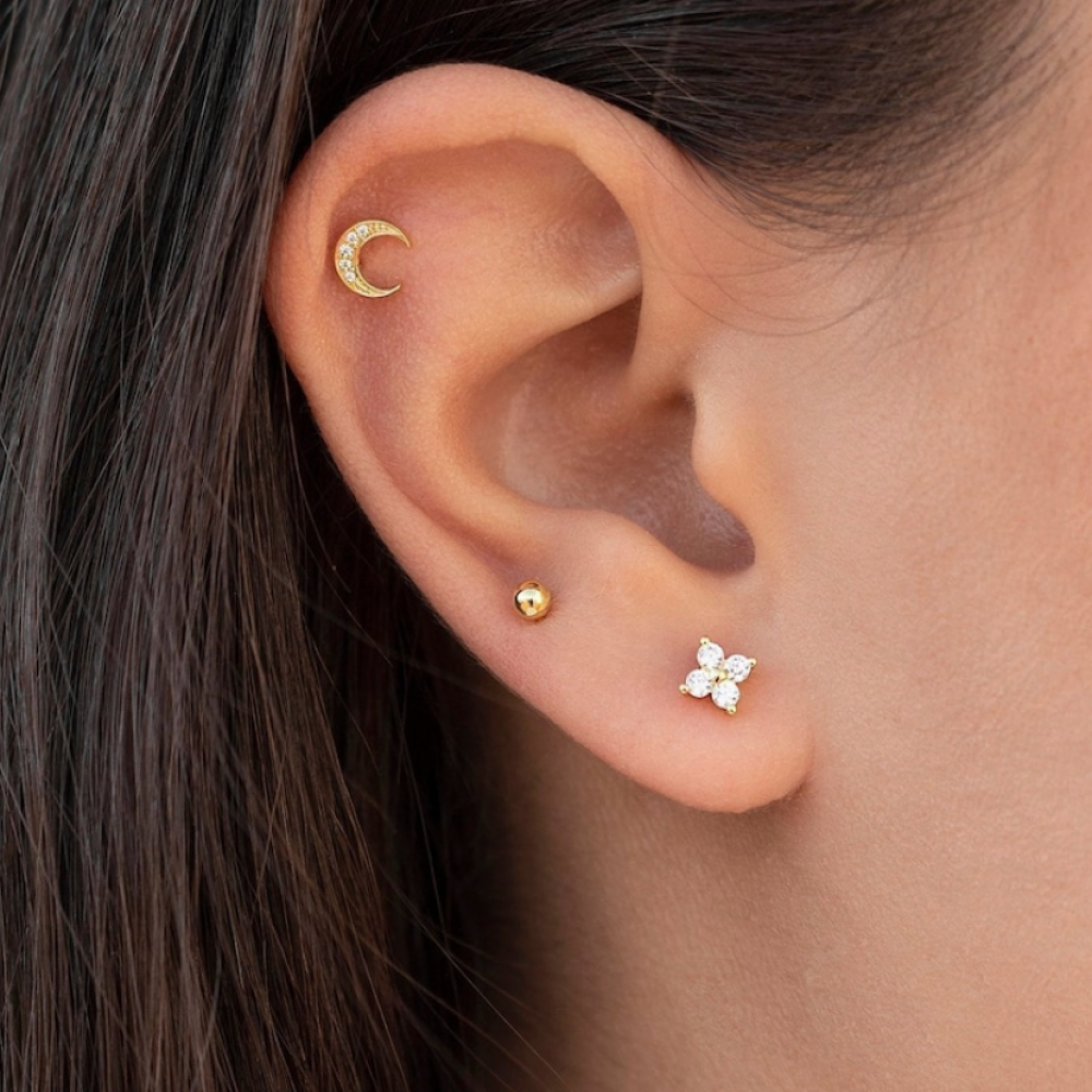 حلق بيرسينق ذهبي مطلي عيار 18 وفضه عيار 925