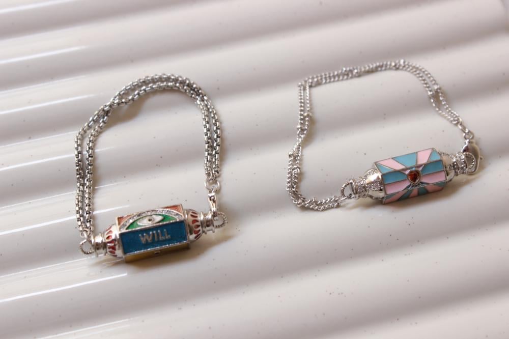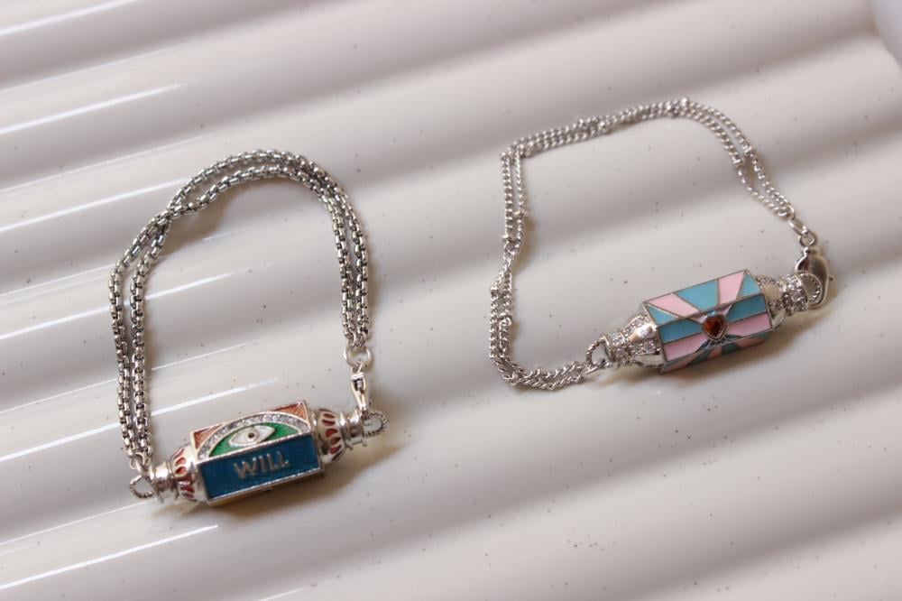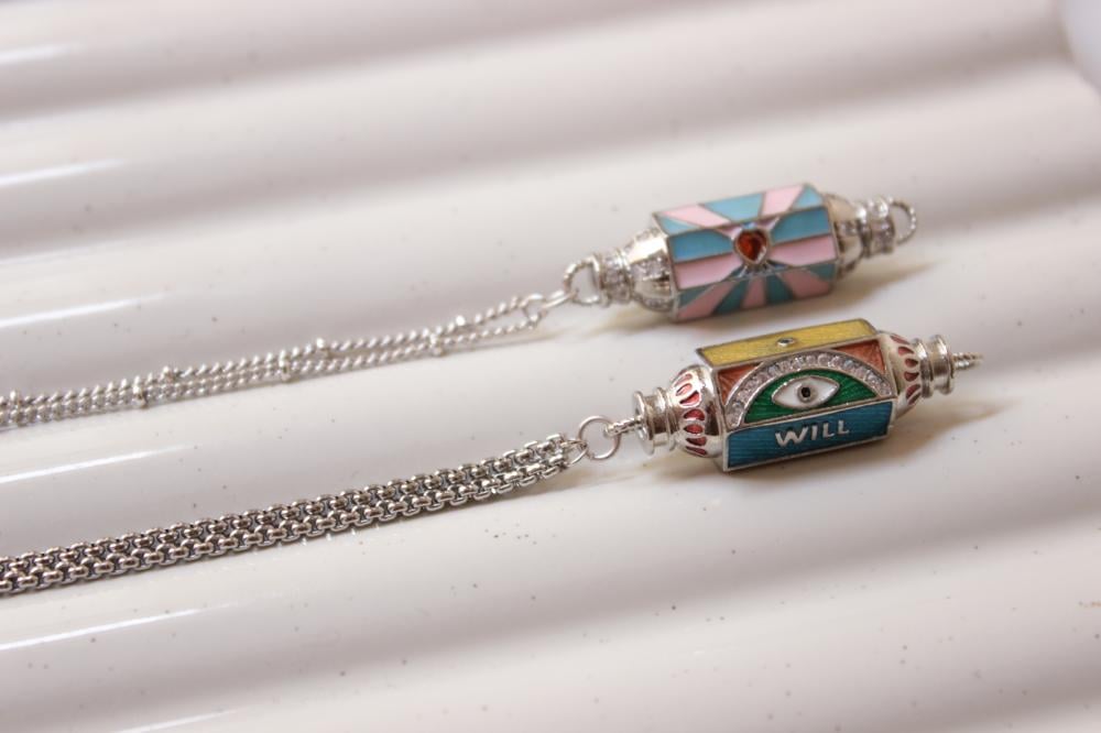 تعليقة شنط بأحجار تدرجات الوردي والموف