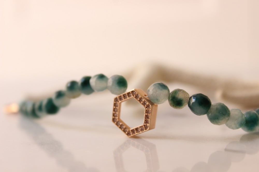 اسوره بحجر اخضر وتعليقة زركون بلون الروزقولد