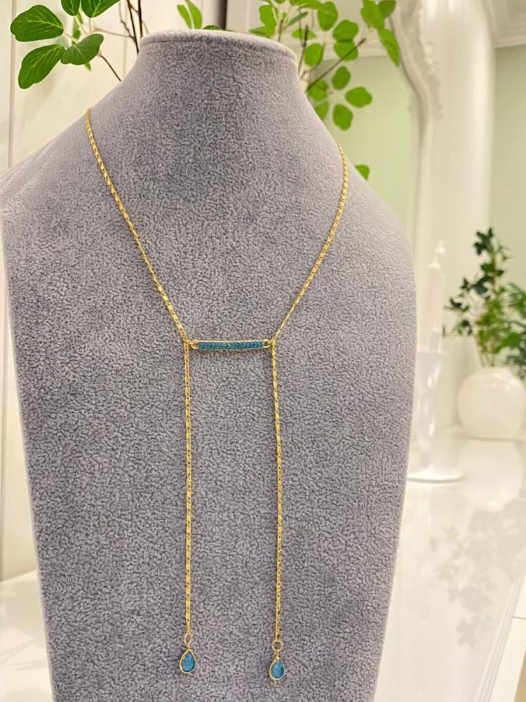 سلسله بار ازرق مع تعليقة ع شكل دمعه