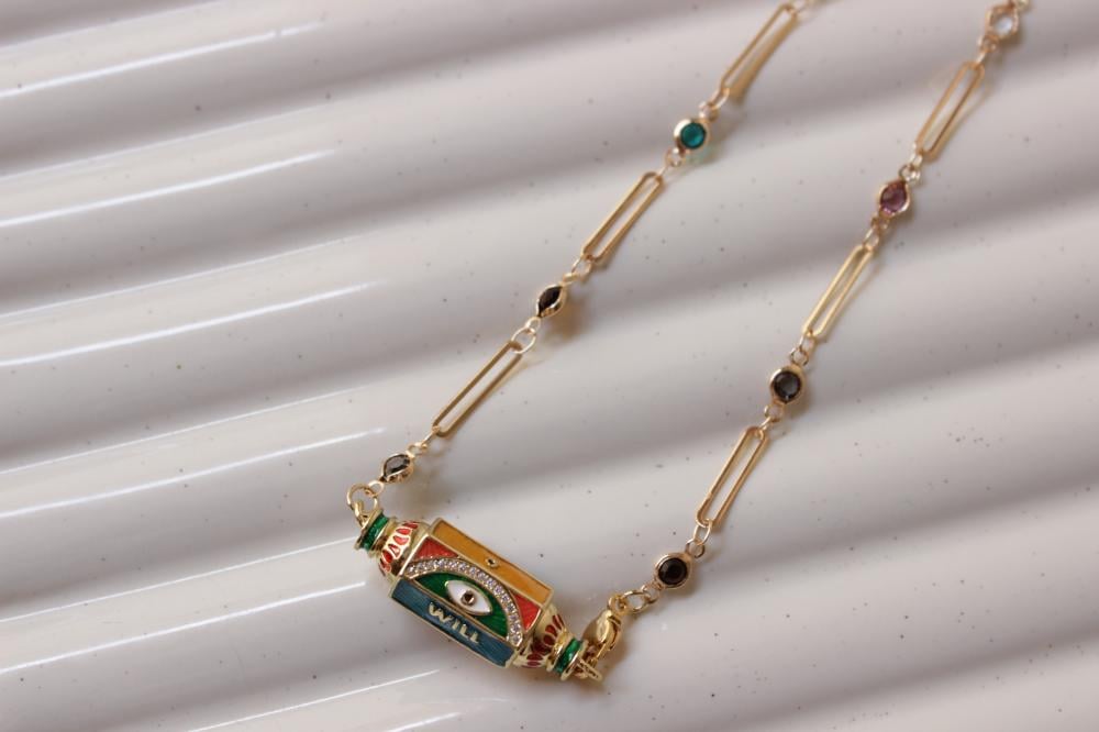 خلخال خرز بنفسجي بتعليقه خرز عين احمر