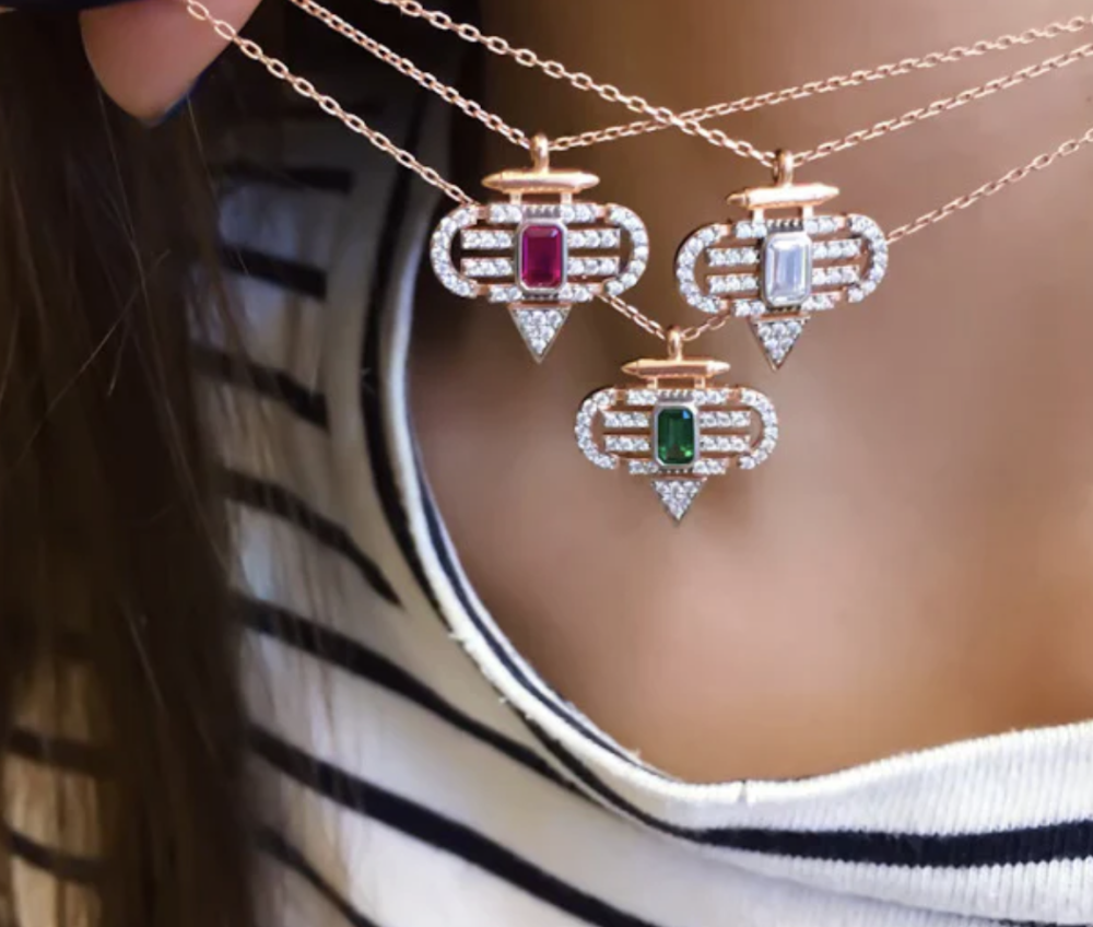سلسله زركون ع شكل مثلث فضة صافيه عيار ٩٢٥
