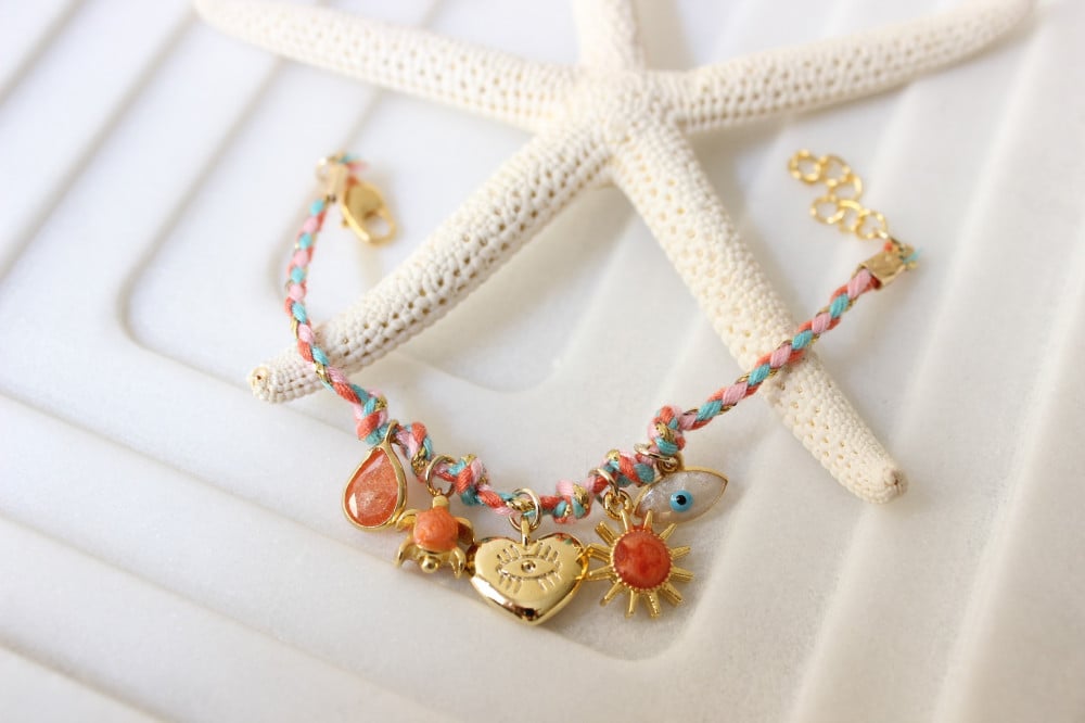 سلسله خرز ازرق مع تعليقة حجر ابيض