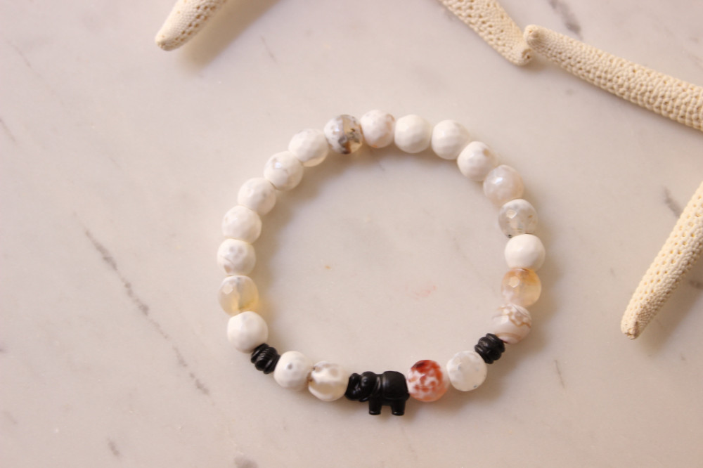 اسوره بحجر ابيض مع تعليقه الفيل بالاسود المطفي