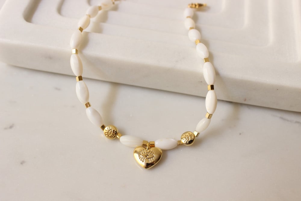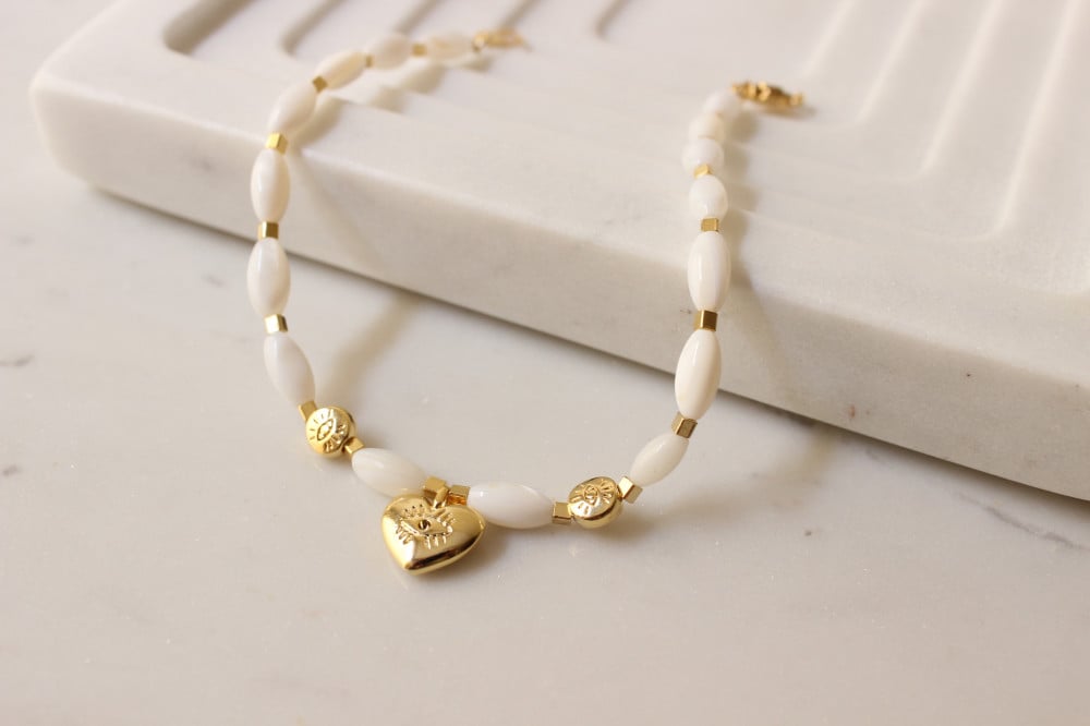خلخال خرز ابيض مع قلب ذهبي اكسسوار مطلي