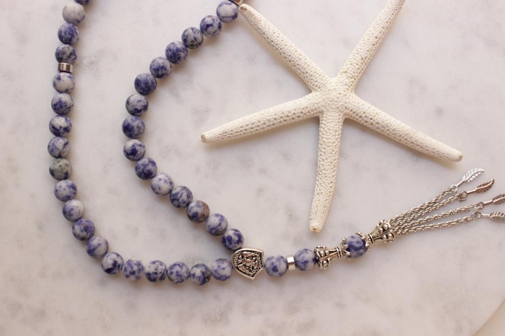 اسوره فنتج خرز عنابي مع تعليعات فضه