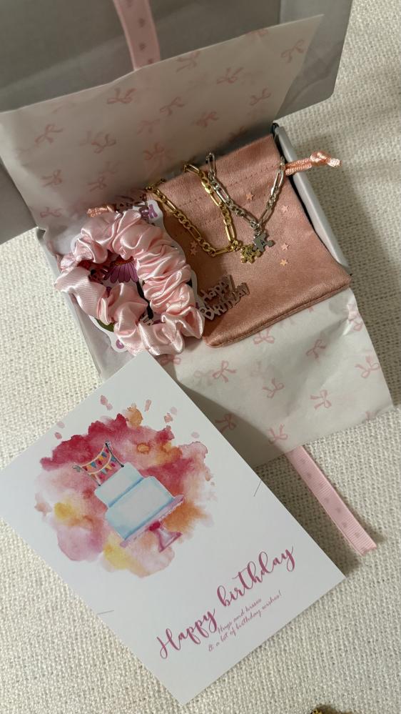 بوكس الإهداء عباره عن كرت وربطة شعر وشمعة