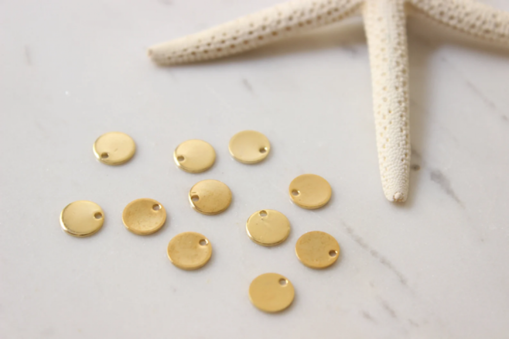 8mm 24k Shiny Gold Plated Coins, Coin Charms, Drop Charms, Round Charms, Stamping Blanks, Stamping Tag, Gold Plated Findings